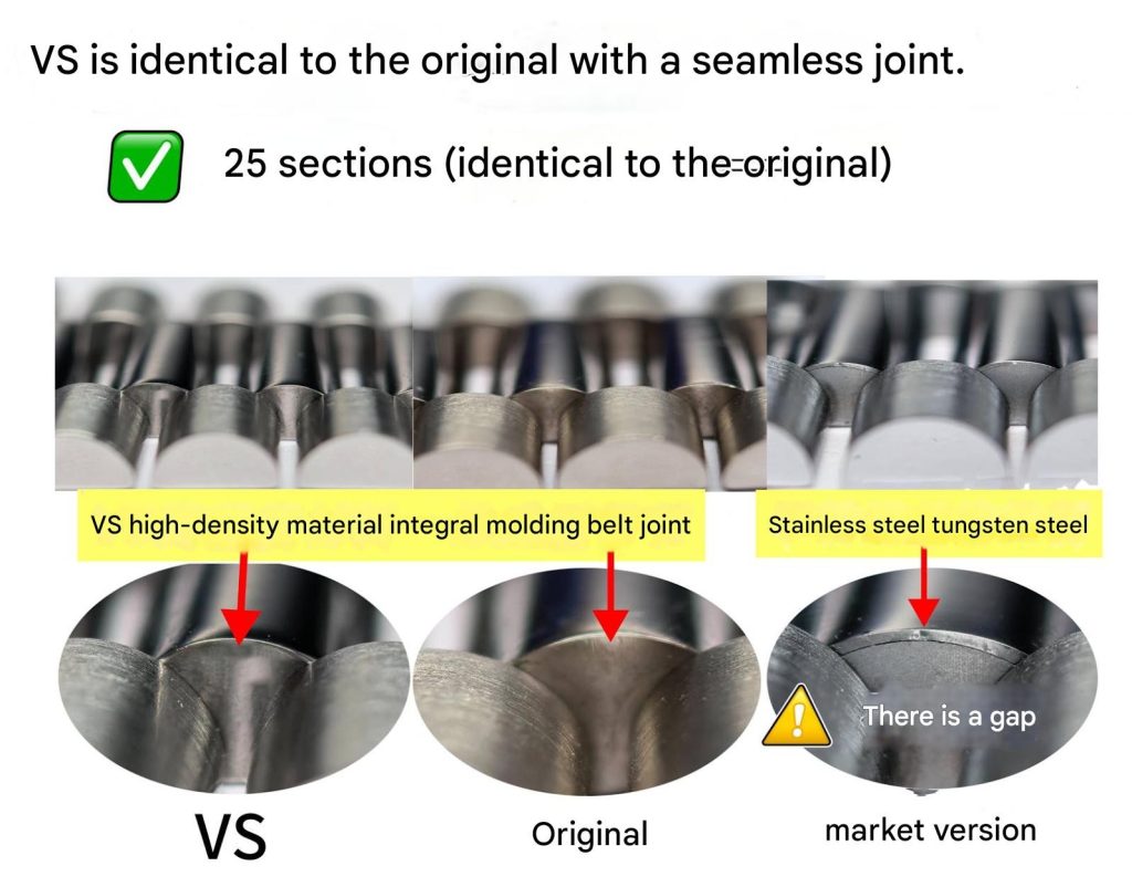 - Cheaper market versions try to add weight by crudely stuffing tungsten steel cores into stainless steel links, resulting in ugly, visible gaps that collect dirt and look terrible upon close inspection.