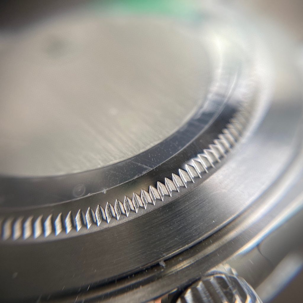 - Case Back Fluting: The grooved teeth on the case back, designed for the special Rolex opening tool, are sharply and evenly machined, reflecting exceptionally high manufacturing tolerances.