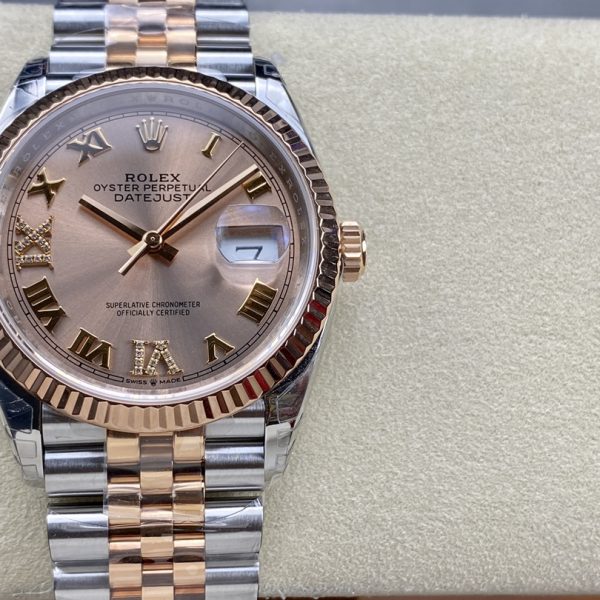 VS Factory Rolex Datejust 36mm Two-Tone Rose Gold Rosé Dial with Diamond Roman Makes (126231) 1:1 Super Clone – DD3235 Movement