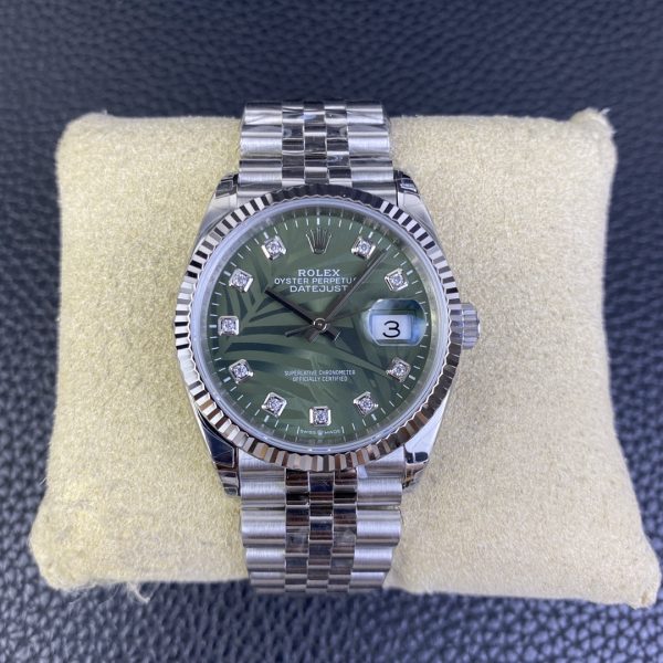 VS Factory Rolex Datejust 36mm Olive Green Palm Motif Diamond Dial Jubilee Bracelet (126234) 1:1 Super Clone – DD3235 Movement