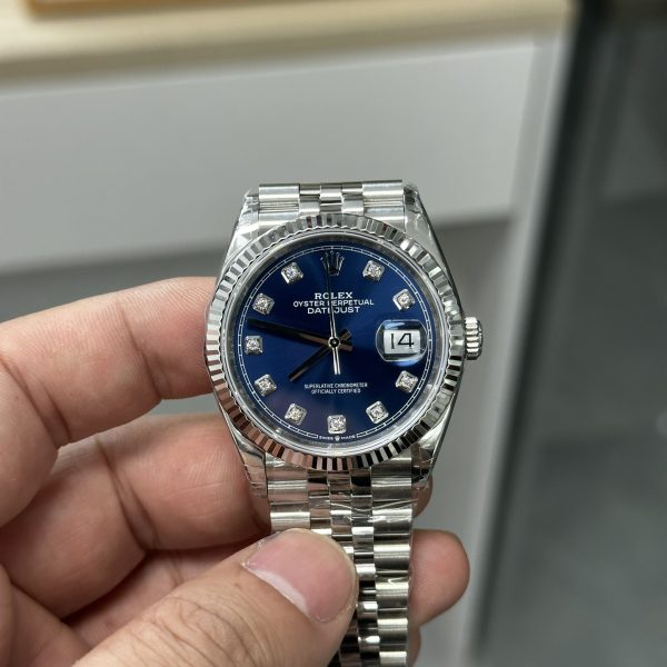 VS Factory Rolex Datejust 36mm Blue Fluted Motif Diamond Dial Jubilee Bracelet (126234) 1:1 Super Clone – DD3235 Movement