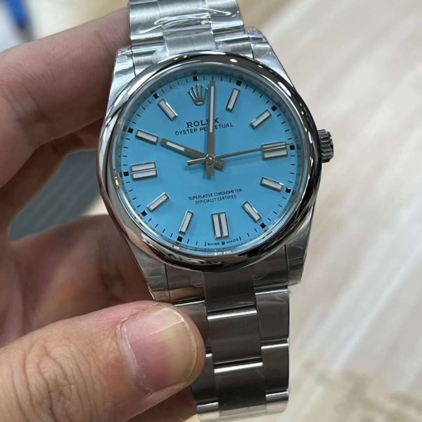 VS Factory Rolex Oyster Perpetual 41mm Turquoise “Tiffany” Blue Dial Smooth Bezel Oyster Bracelet (124300) 1:1 Super Clone – VS3230 Movement