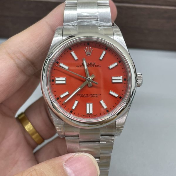 VS Factory Rolex Oyster Perpetual 41mm Coral Red Dial Smooth Bezel Oyster Bracelet (124300) 1:1 Super Clone – DD3230 Movement