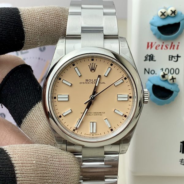 VS Factory Rolex Oyster Perpetual 41mm Candy Pink Lacquer Dial Smooth Bezel Oyster Bracelet (124300 Custom) 1:1 Super Clone – DD3230 Movement