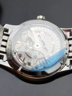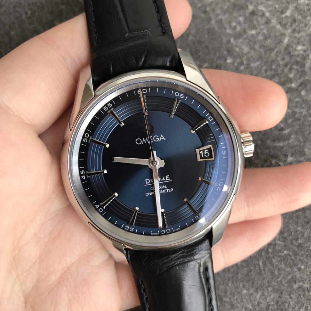• Refined 39.5mm Dress Case: Unlike the thicker sports models, the De Ville utilizes a highly wearable, incredibly slim 39.5mm case designed specifically to slide effortlessly under a tailored dress shirt cuff. The entire case body, smooth stepped bezel, and slim traditional crown are given a flawless, mirror-like high polish.