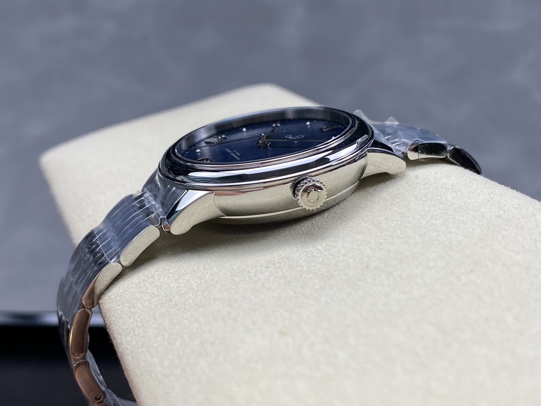 The Omega De Ville Prestige 40mm (Reference 434.10.40.20.03.001) is a world-renowned symbol of classical design and refined elegance. Flawlessly executed by the legendary VS Factory (VSF), this 1:1 super clone perfectly replicates the highly upgraded “Third Generation” of the Prestige collection. Housed in a beautifully slender 40mm stainless steel case, it features a domed, dark blue sun-brushed dial adorned with the collection’s signature alternating Roman numerals and cabochon indexes. Mounted on the intricate, fluid 7-link Prestige bracelet, this piece is the ultimate understated dress watch for formal and professional settings. Powered by the industry-leading Dandong DD8800 1:1 Co-Axial clone movement, it delivers flawless reliability, a seamless date function, and stunning decorative accuracy.