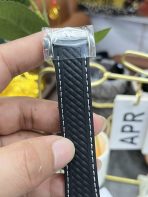 Integrated Rubber Strap with White Stitching: Leaning fully into a sporty, athletic aesthetic, the watch is mounted on a deeply textured, black integrated rubber strap featuring a woven, sailcloth-like pattern. To perfectly echo the white luminous material on the dial, the strap is finished with subtle white contrasting stitching. It is highly resistant to saltwater and sweat, secured by a sleek stainless steel deployant clasp.