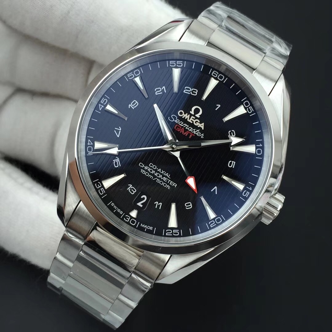 The Omega Seamaster Aqua Terra 150M GMT (Reference 231.10.43.22.03.001) is a modern classic, celebrated for seamlessly blending the elegance of a maritime dress watch with the high-utility function of a traveler’s GMT. Flawlessly executed by the legendary VS Factory (VSF)—the undisputed masters of Omega super clones—this 1:1 replica captures the iconic “vertical teak” aesthetic of the previous generation that collectors still highly revere. Housed in a robust 43mm stainless steel case, it features a deep blue sunburst dial defined by its vertical deck lines, contrasting sharply with sporty red GMT accents. Mounted on a fully articulated 3-link stainless steel bracelet, this piece is the ultimate “one-watch collection” for the global traveler. Powered by the industry-leading Dandong DD8605 1:1 Co-Axial GMT clone movement, it delivers flawless reliability, a true independent jumping hour hand, and stunning decorative accuracy.