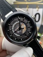 The Omega Seamaster Aqua Terra 150M Worldtimer in Titanium (Reference 220.92.43.22.99.001) is a breathtaking fusion of complex global travel functionality and cutting-edge, ultra-lightweight material engineering. Flawlessly executed by the legendary VS Factory (VSF)—the undisputed masters of complex Omega super clones—this 1:1 replica captures the stealthy, tactical aesthetic and highly intricate dial architecture of the genuine article. Housed in a robust 43mm case forged from fully brushed Grade 2 Titanium, it is topped with a rare brushed black ceramic bezel. The dial features a monochromatic grey/black global destination ring, centered around a stunning 3D laser-ablated titanium map of the Earth. Mounted on a seamlessly integrated black rubber strap, this piece is the ultimate modern statement watch for the international traveler. Powered by the incredibly complex, industry-leading Dandong DD8938 1:1 Co-Axial Worldtimer clone movement, it delivers flawless global timekeeping and stunning decorative accuracy.