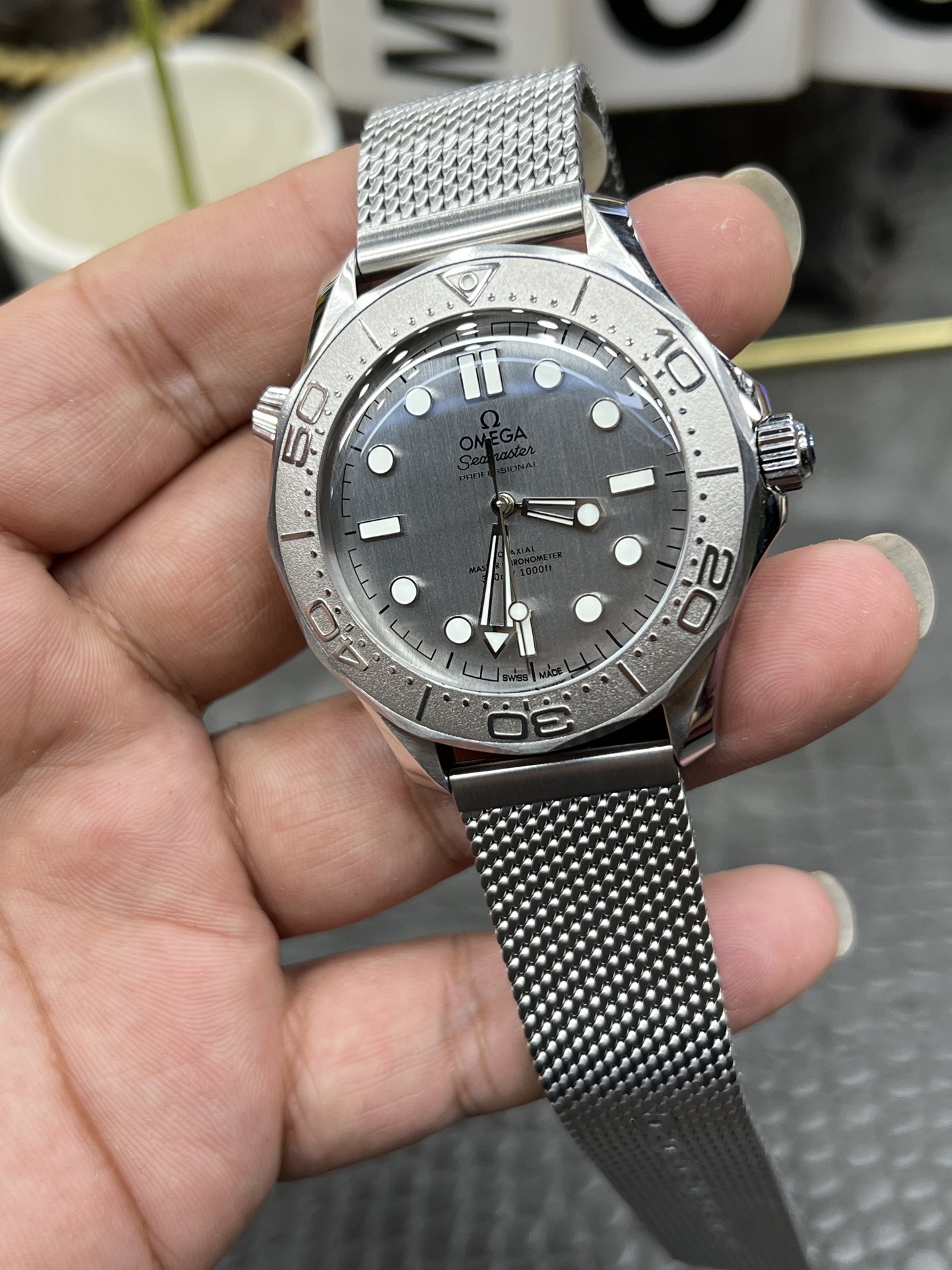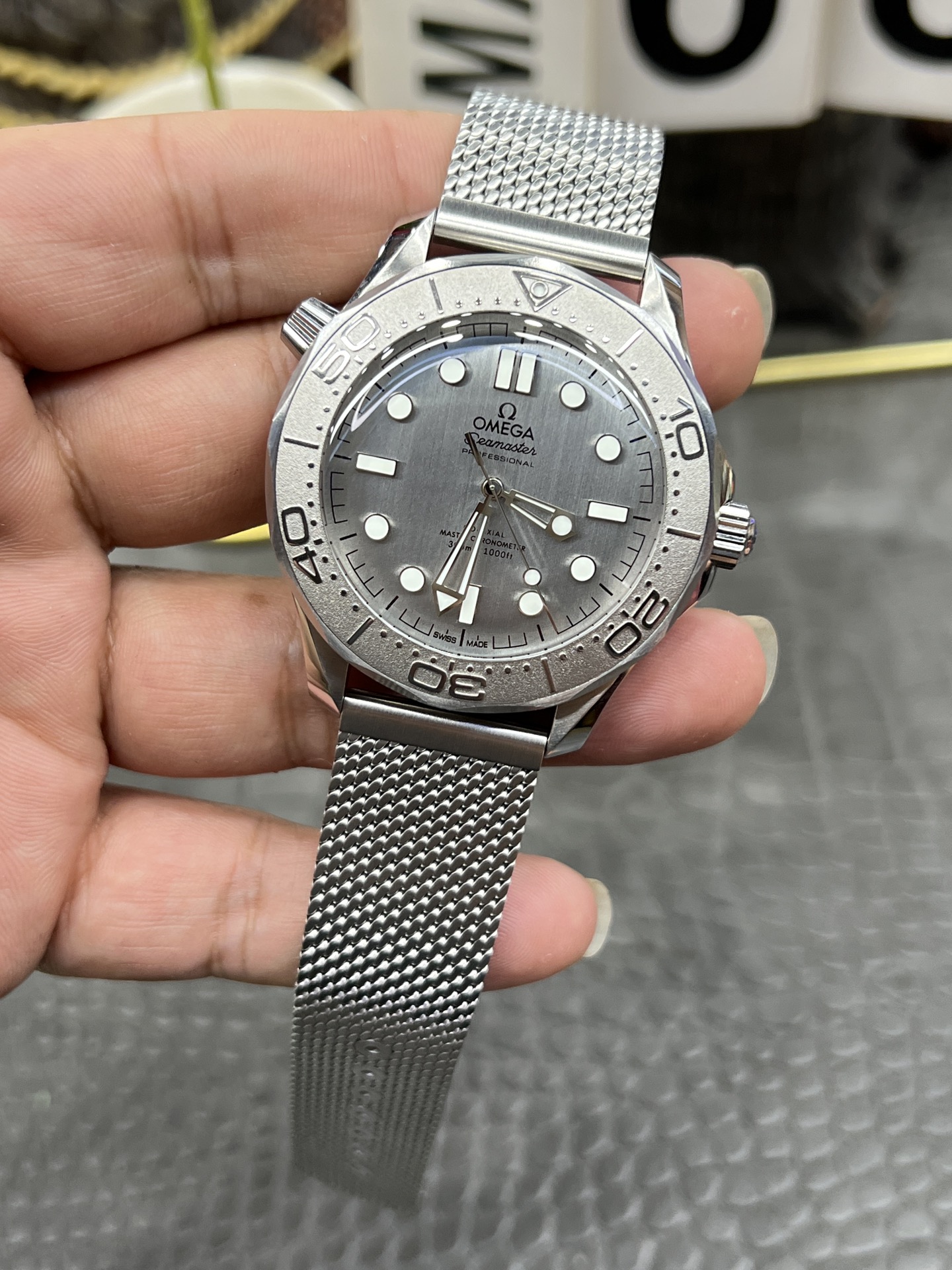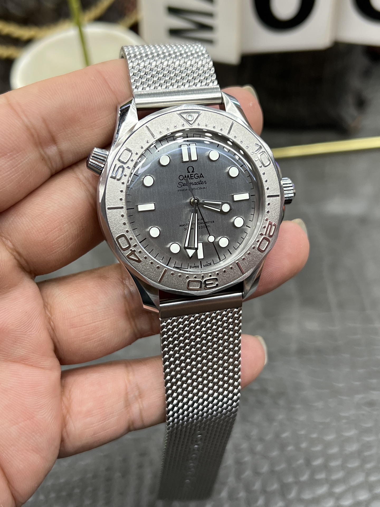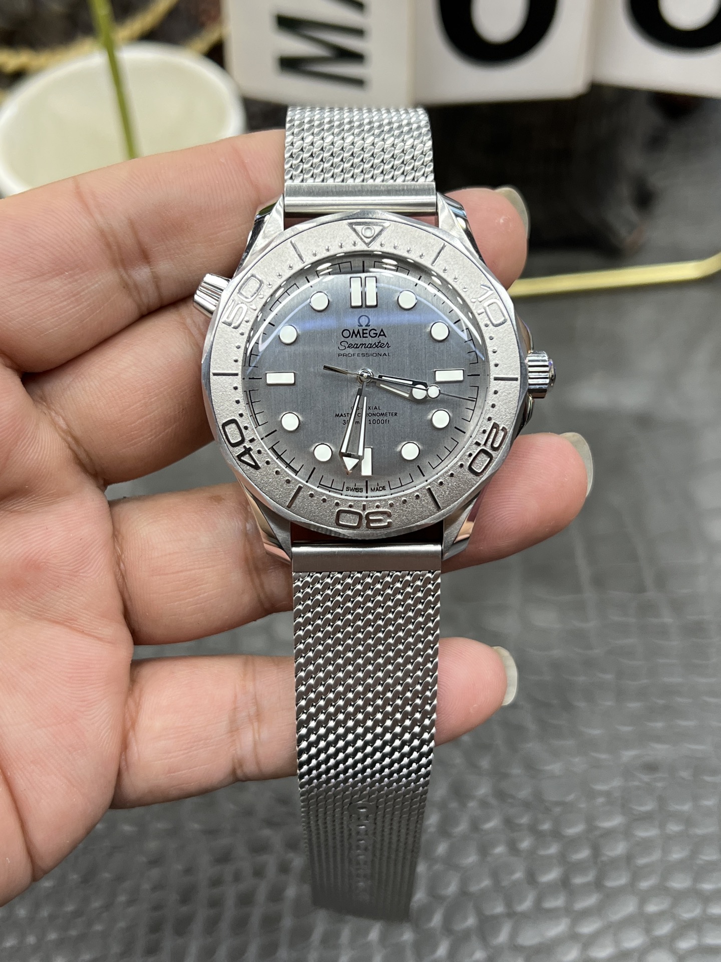 The Omega Seamaster Diver 300M James Bond 60th Anniversary (Reference 210.30.42.20.03.002) is a breathtaking homage to 007’s on-screen legacy, specifically blending the modern tactical feel of No Time To Die with the classic blue aesthetic introduced in 1995’s GoldenEye. Flawlessly executed by the legendary VS Factory (VSF)—the undisputed masters of Omega super clones—this 1:1 replica captures the nostalgic charm and modern engineering of the genuine article. Housed in a robust 42mm stainless steel case, it deliberately drops modern ceramic in favor of a blue anodized aluminum dial and bezel for authentic vintage warmth. Mounted on an incredibly comfortable stainless steel Milanese mesh bracelet, this piece is the ultimate spy-chic accessory. Powered by the industry-leading Dandong DD8806 1:1 Co-Axial no-date clone movement, it delivers flawless reliability, perfect dial symmetry, and stunning decorative accuracy.