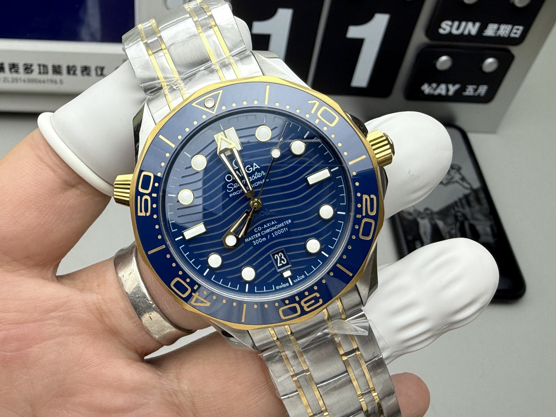 VS Factory Omega Seamaster Diver 300M 42mm Two-Tone Yellow Gold Blue Dial (210.20.42.20.03.001) 1:1 Super Clone -DD8800 Movement