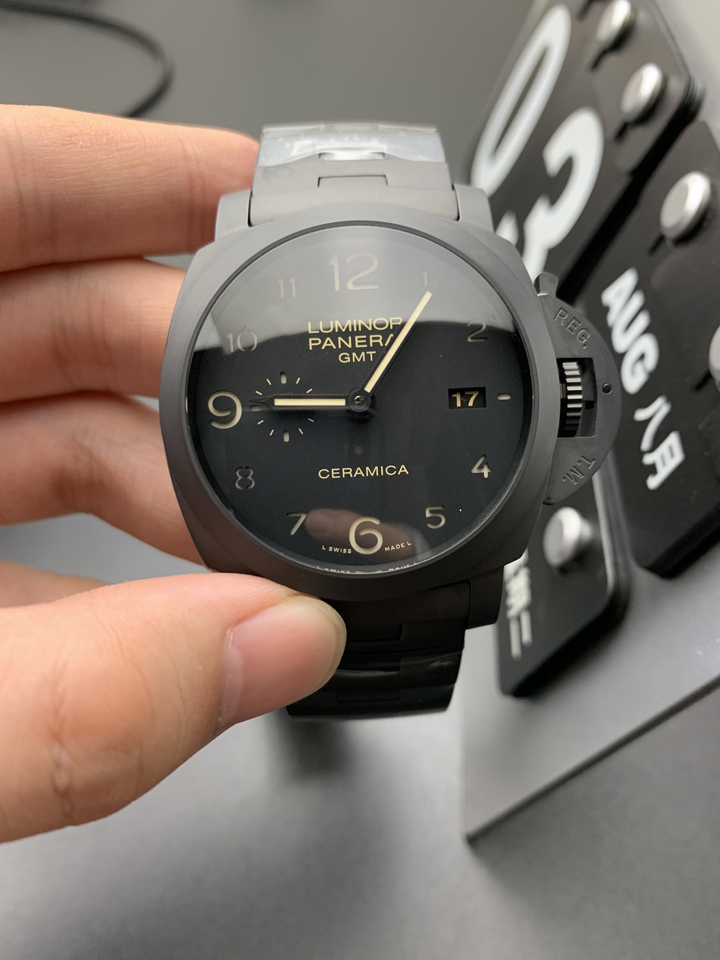 Model Reference: PAM00438 (Luminor 1950 “Tuttonero” GMT 44mm / Full Ceramic)