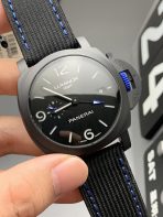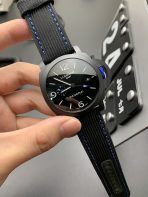 The Panerai Luminor GMT Ceramica (PAM01176) is a highly sought-after special edition originally created in partnership with the legendary Swiss retailer Bucherer. Flawlessly executed by the master watchmakers at VS Factory (VSF)—the absolute, undisputed kings of Panerai super clones and ceramic machining—this 1:1 replica captures the stealthy geometry and exclusive visual impact of the genuine article. Housed in the classic 44mm cushion-shaped case, it is constructed entirely from high-tech matte black Zirconium Oxide ceramic. The absolute standout features are the vibrant “Bucherer Blue” accents: the electric blue small seconds hand, the blue-tipped GMT hand, the blue contrast stitching on the strap, and the highly distinctive blue rubberized crown. Mounted on a high-performance black woven Sportech strap, this piece is the ultimate fusion of covert tactical utility and exclusive modern luxury. Powered by the incredibly advanced Dandong P.9010 GMT 1:1 clone movement, it delivers unparalleled reliability, dual-time functionality, and flawless mechanical execution.