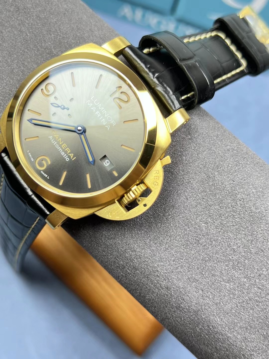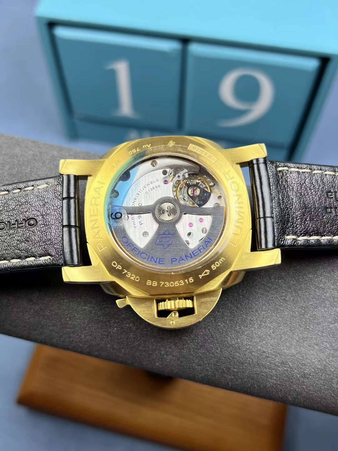 The Goldtech™ Armor: Standard rose gold can sometimes look brassy, but Panerai’s proprietary Goldtech incorporates a higher percentage of copper for a deeper red tone, and a touch of platinum. VSF has masterfully color-matched their heavy 18K electroplating to perfectly replicate this rich, luxurious, and highly distinctive metallic warmth across the entire 44mm Luminor 1950 case and the patented locking crown-protecting bridge.