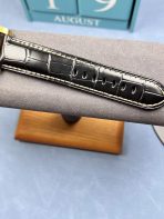 Strap: Premium Dark Blue Alligator-Embossed Leather Strap with Beige Contrast Stitching and a Rose Gold Plated Pre-V Tang Buckle