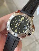The Panerai Luminor Submersible (PAM01024) is a direct descendant of the legendary PAM 024, serving as the quintessential core of Panerai’s modern diving heritage. Flawlessly executed by the master watchmakers at VS Factory (VSF)—the absolute, undisputed kings of Panerai super clones—this 1:1 replica captures the bold geometry, heavy-duty build, and classic old-school aesthetic of the genuine article. Housed in the classic 44mm cushion-shaped case, it features a striking visual contrast: a highly polished stainless steel case and crown guard paired with a heavily brushed steel dive bezel. The absolute standout feature is the stealthy black dial, adorned with vintage-styled painted luminous dots, Arabic numerals at 12 and 6, and the classic magnifying cyclops over the date window. Mounted on the heritage black rubber strap featuring deeply embossed “PANERAI” block lettering, this piece screams pure, unadulterated tactical utility. Powered by the incredibly robust Custom Dandong OP XXX (heavily modified Asian 7750) automatic clone movement, it delivers unparalleled reliability and flawless mechanical execution.