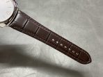 Strap: Premium Dark Brown Alligator-Embossed Leather Strap with Contrast Stitching and Polished Steel Pre-V Tang Buckle