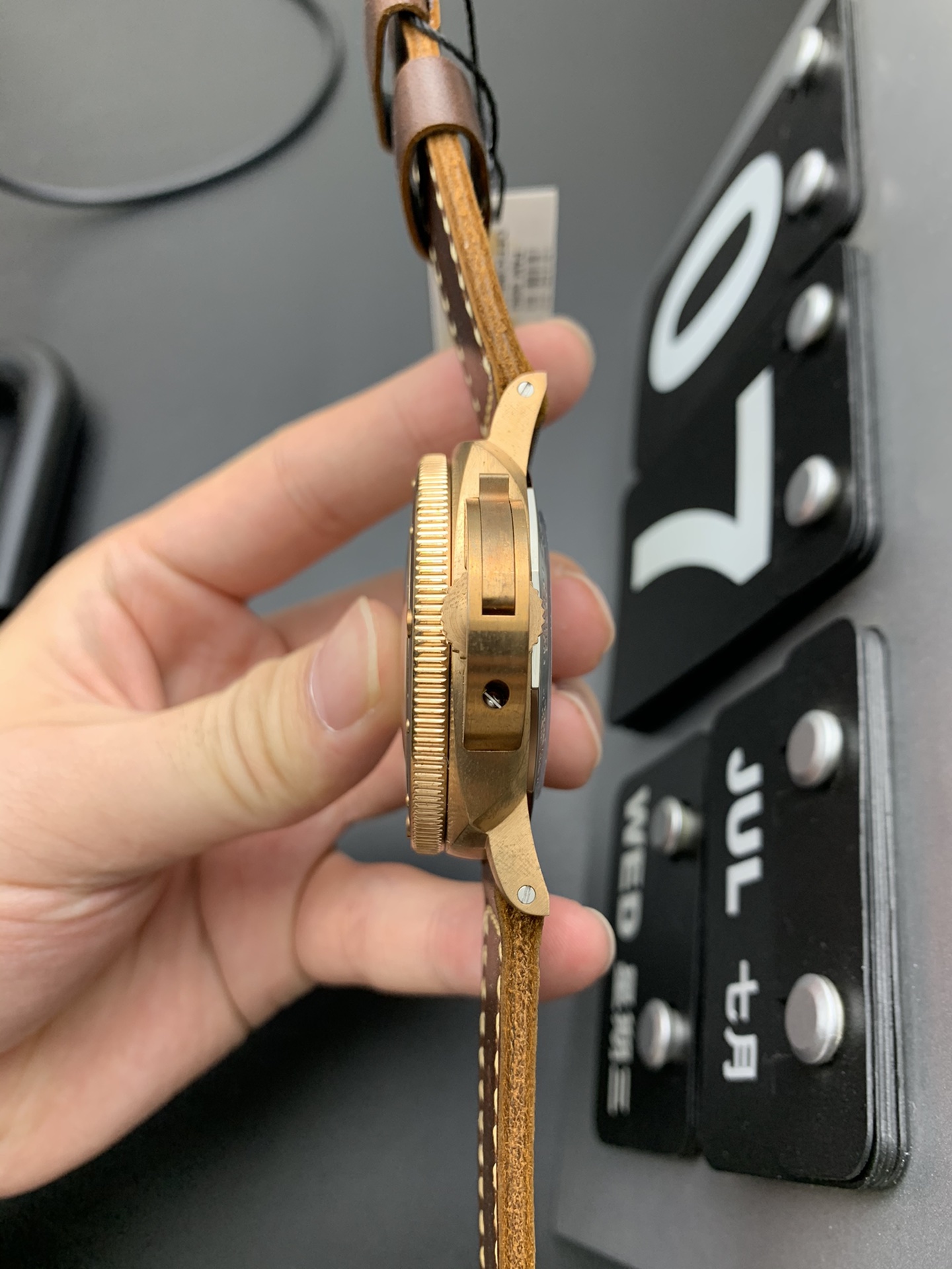 The Bronze & Ceramic Hybrid Armor: This is the absolute core of the PAM 968’s aesthetic dominance. VSF has flawlessly sourced authentic CuSn8 marine bronze, which will rapidly develop a dark, greenish-brown patina when exposed to saltwater and air. However, the matte brown ceramic bezel insert remains forever pristine and immune to scratches or oxidation. This creates a striking, permanent high-contrast zone between the raw, decaying metal and the cutting-edge aerospace ceramic.