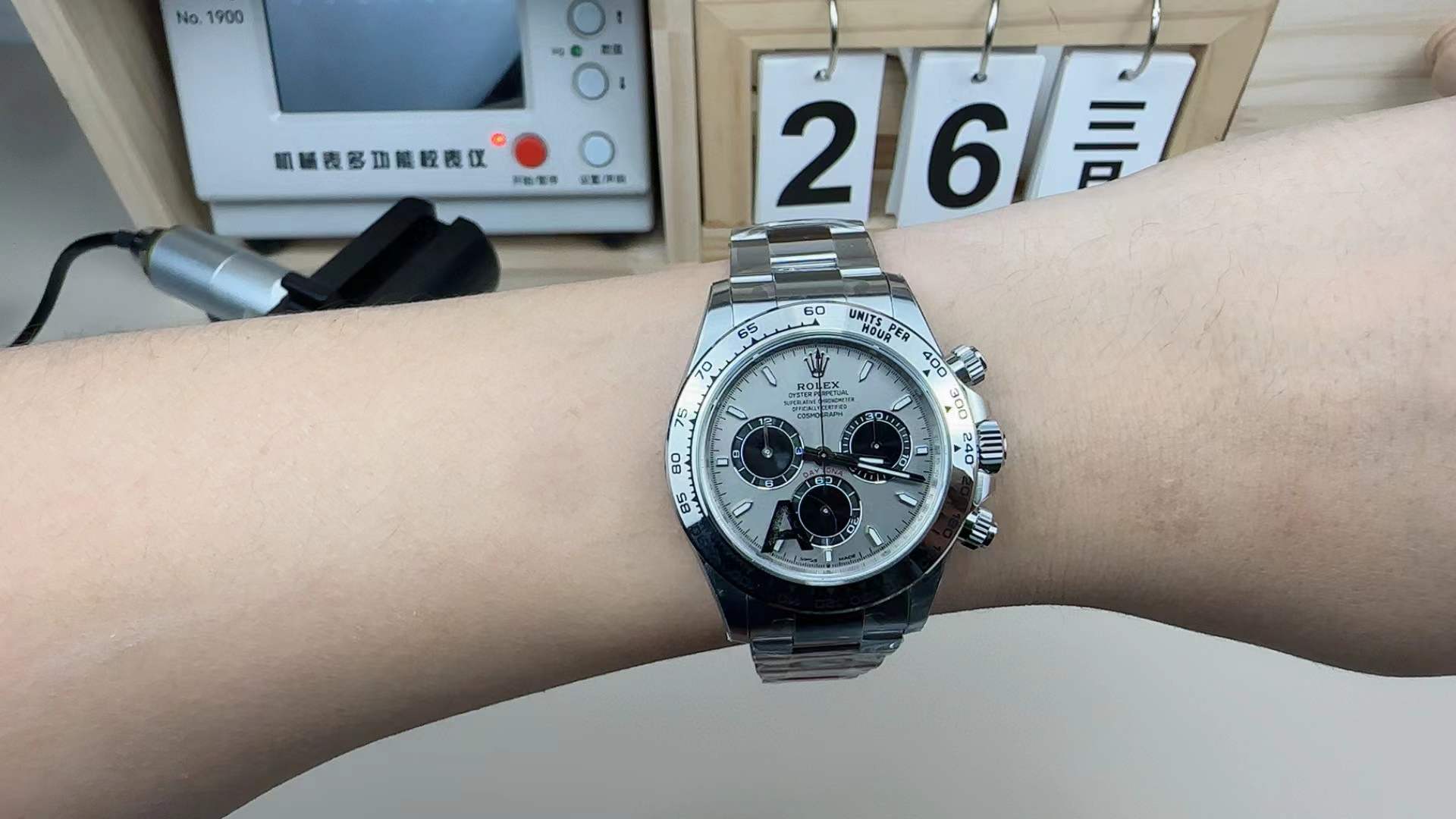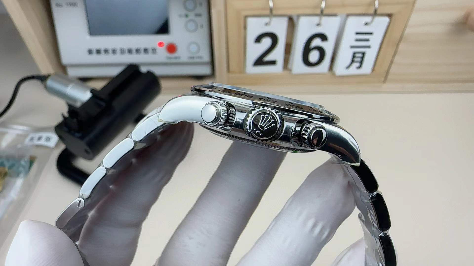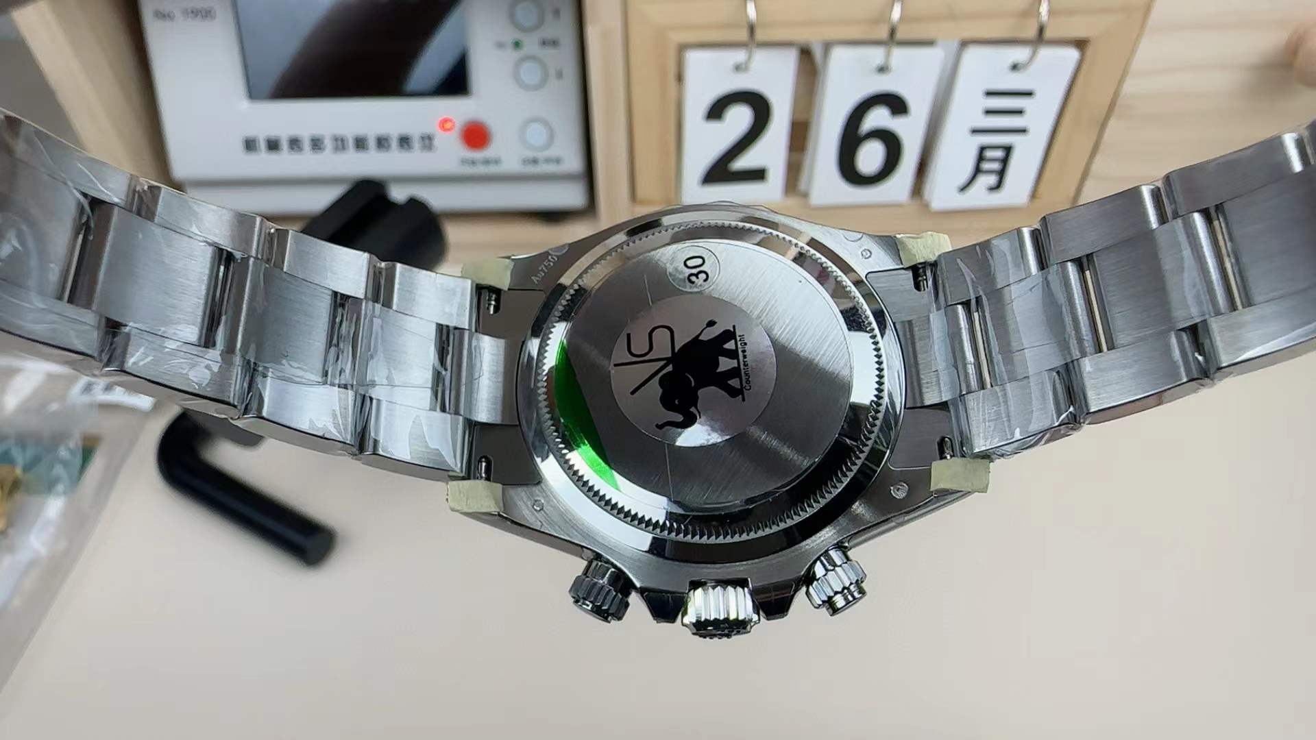 Case Dimensions: 40mm Diameter, 12.2mm Thickness (Exact to the genuine White Gold Daytona specifications down to the fraction of a millimeter)