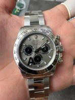 The VS Factory Rolex Cosmograph Daytona 116509 is the ultimate expression of “stealth wealth.” Taking the universally celebrated sunburst slate grey dial—often affectionately known as the “Grey Ghost” dial—and pairing it with a full solid Oyster bracelet and an engraved metal bezel, this 1:1 super clone is an absolute showstopper. Flawlessly capturing the beloved classic generation that purists adore, this model replaces the modern ceramic bezel with a sleek, all-metal aesthetic. Powered by the legendary Calibre 4130 automatic chronograph movement, it achieves the exact ultra-thin profile of the genuine watch while delivering fully functional, heavy-hitting luxury that is virtually indistinguishable from the original.