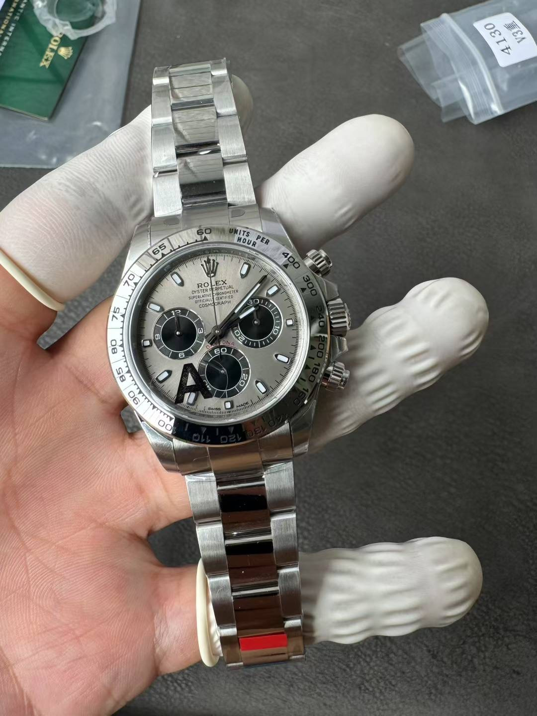 Simulated White Gold Luster: The genuine 116509 is crafted from solid 18K white gold. To replicate this, VS Factory forges the entire case and solid Oyster bracelet from highly durable 904L stainless steel, then applies a specialized, flawless high-polish finish that perfectly replicates the distinct, slightly warmer white gleam of genuine white gold.