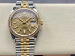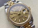 Classic Yellow Gold Two-Tone Architecture: VSF has flawlessly electroplated a rich, vibrant 18K Yellow Gold tone onto the winding crown and the three center links of the Jubilee bracelet. This perfectly mimics Rolex’s traditional yellow gold alloy, creating a seamless, wealthy contrast against the bright, white finish of the brushed and polished 904L steel.