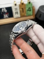Vibrant Sunburst Blue Dial: The dial is a masterclass in dynamic Rolex finishing. The rich, deep blue face features a brilliant sunburst texture that explodes with vibrant azure tones under direct sunlight, while shifting to a deep navy in low-light environments. The applied baton hour markers and hands are filled with premium Chromalight for a strong, long-lasting blue glow in the dark, ensuring perfect legibility.
