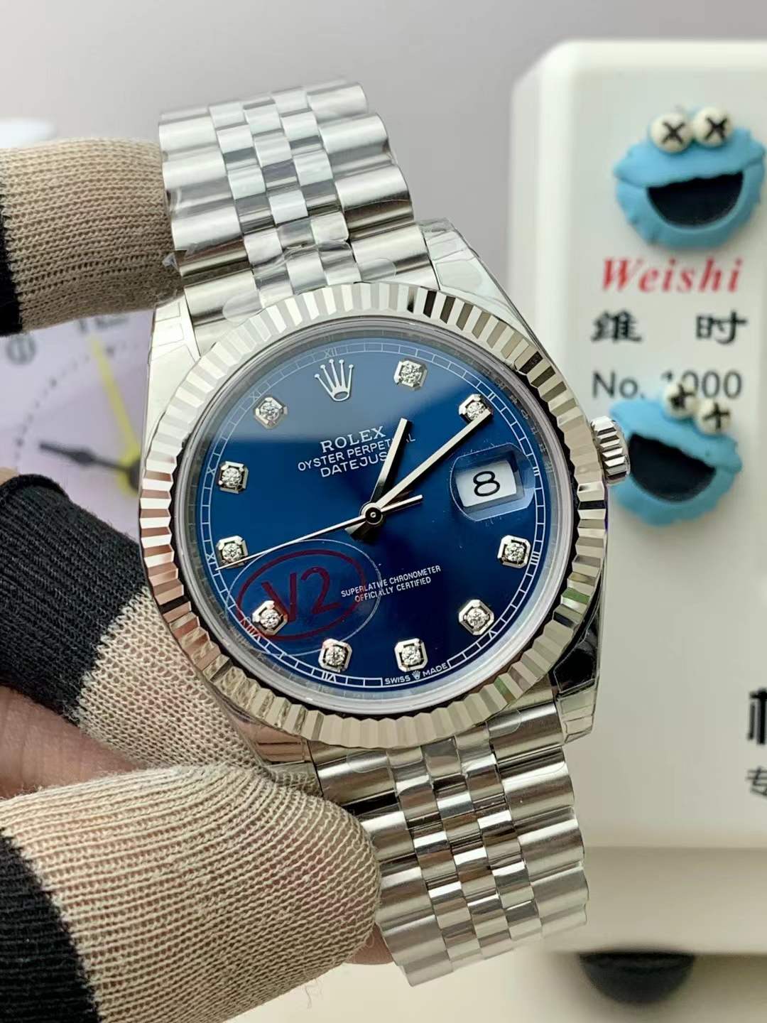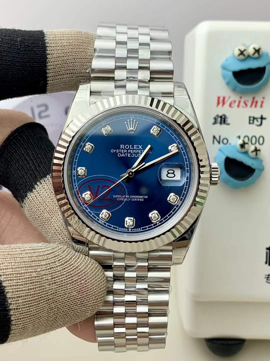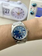 The Rolex Datejust 41 (Ref. 126334) configured with a blue sunburst dial and diamond hour markers is the ultimate flex of modern elegance. It perfectly bridges the gap between a robust everyday steel sports watch and high-end VIP jewelry. As the undisputed kings of 1:1 Rolex super clones, VS Factory (VSF) has executed this glamorous silhouette with terrifying precision. Marked by the highly coveted red “V2” crystal sticker, this edition signifies crucial upgrades to the crystal clarity, the fluted bezel geometry, and the handset finish. Housed in the perfectly proportioned 41mm Oyster case, it is forged from premium 904L stainless steel. The absolute standout feature is the deep, radiant blue sunray dial, violently elevated by the blinding flash of factory-style diamond indices set in 18K white gold-plated mounts. Mounted on the legendary five-link Jubilee bracelet, this piece commands absolute attention. Powered by the unrivaled Custom Dandong Caliber 3235 automatic movement, it delivers a massive 72-hour power reserve and flawless mechanical execution.