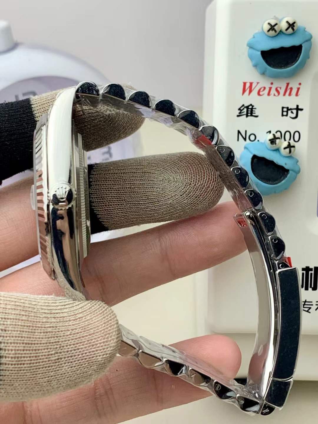The V2 Architecture: The red V2 sticker means business. In this batch, VSF refined the sapphire crystal to ensure maximum transparency with the correct anti-reflective coating under the cyclops lens, eliminating the “black hole” distortion. The fluting on the bezel has also been re-cut to provide sharper, more pronounced edges that catch the light exactly like factory white gold.