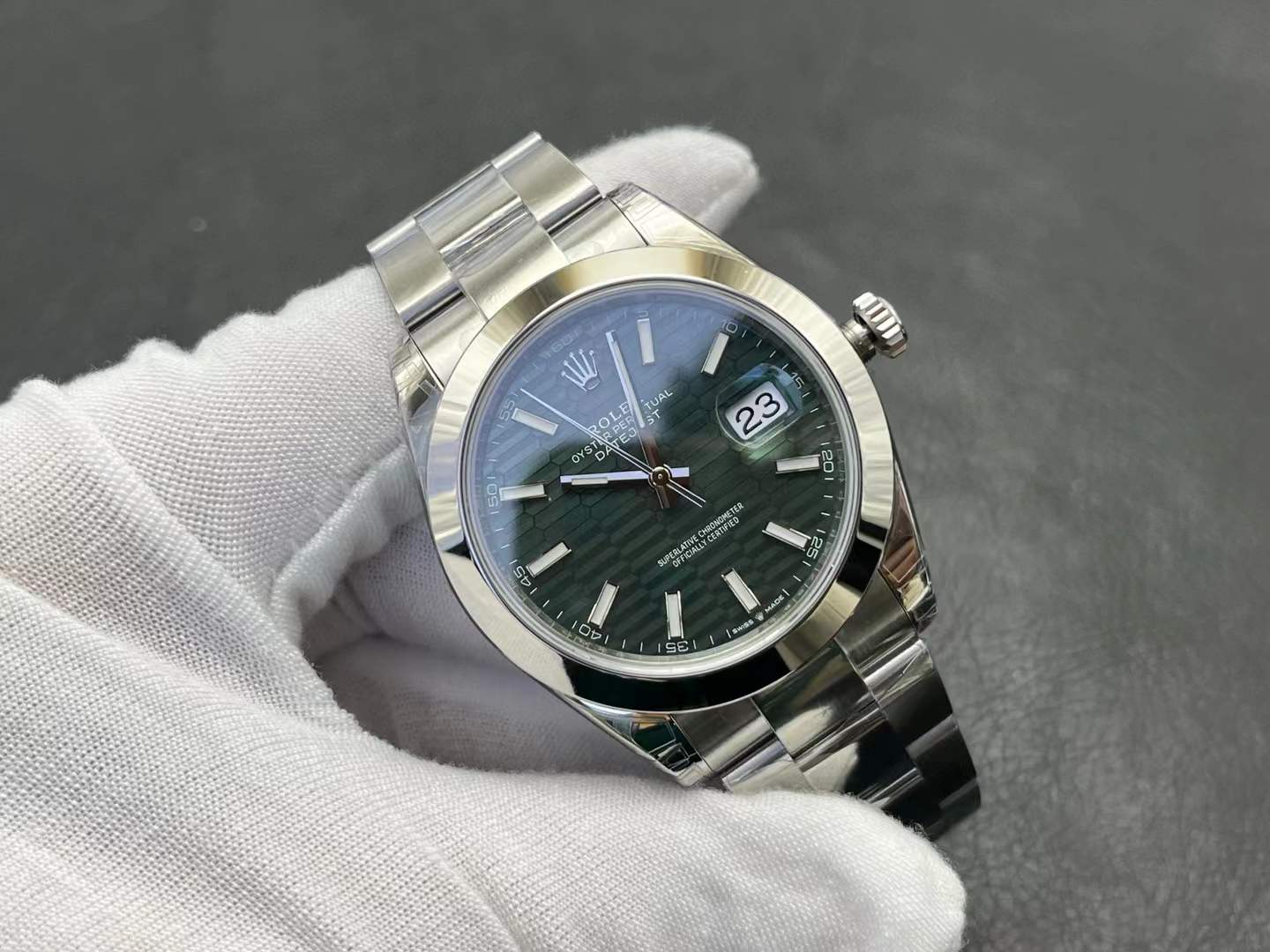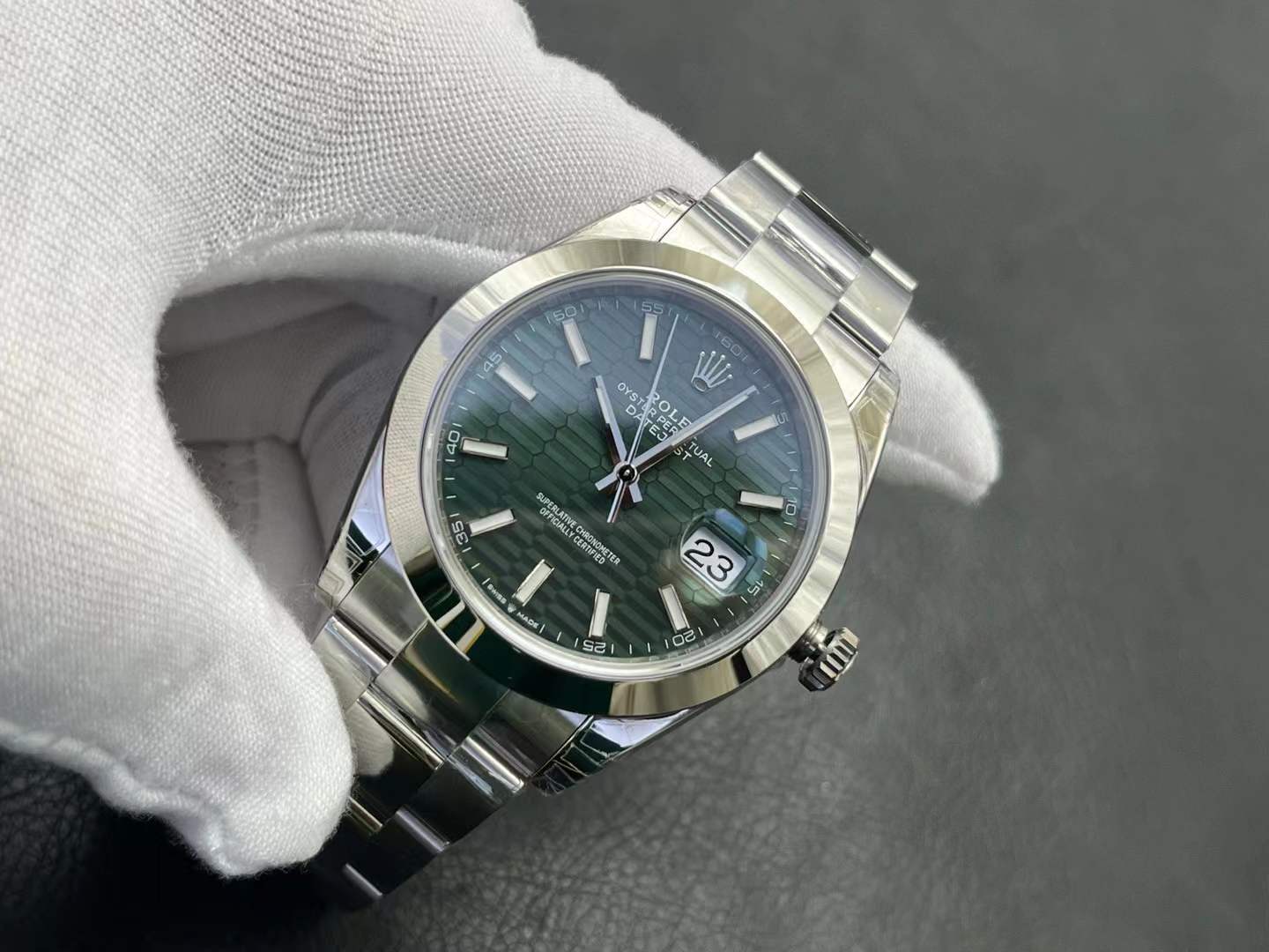 The Rolex Datejust 41 (Ref. 126334) is the undisputed king of everyday luxury, perfectly balancing sporty robustness with boardroom elegance. While the Day-Date commands absolute presidential authority, the Datejust is the ultimate, highly versatile tactical operator. As the reigning masters of 1:1 Rolex super clones, VS Factory (VSF) has executed this modern silhouette with terrifying precision. Housed in the perfectly proportioned 41mm Oyster case, it is forged from premium 904L stainless steel. The absolute standout feature is the mesmerizing “Mint Green Fluted Motif” dial—a highly intricate, laser-etched geometric pattern that perfectly mirrors the iconic fluted bezel. Mounted on the heavy-duty, three-link Oyster bracelet, this piece leans into a sportier, more aggressive aesthetic than its Jubilee counterparts. Powered by the unrivaled Custom Dandong Caliber 3235 automatic movement, it delivers a massive 72-hour power reserve and flawless mechanical execution.