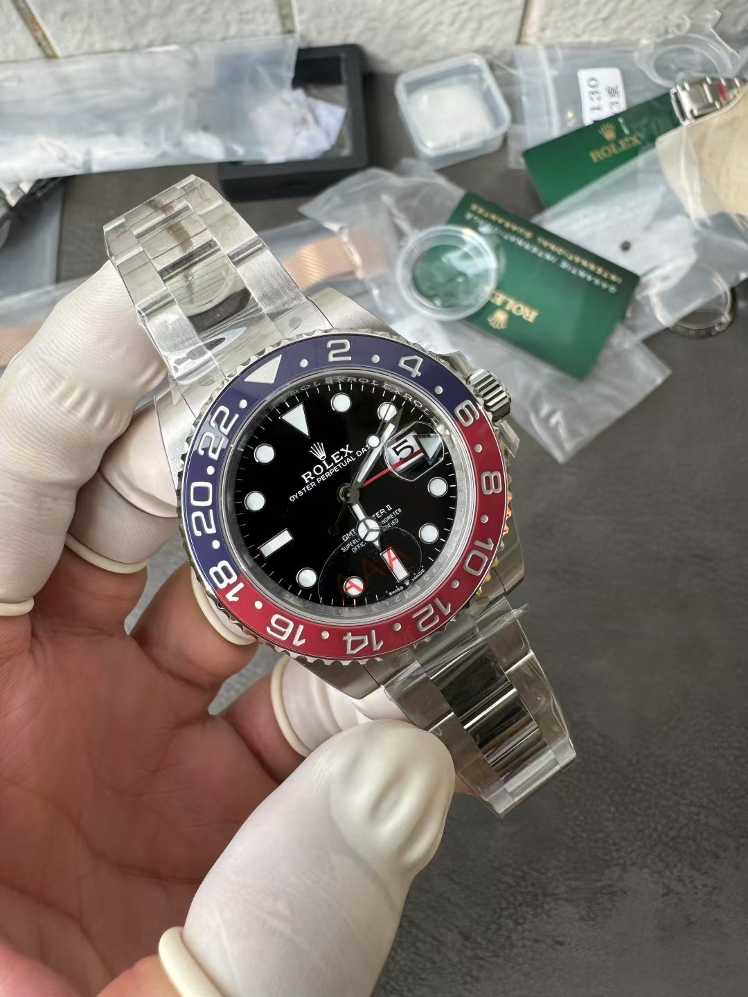 High-Fidelity Handset: The hands are precision-crafted with a sharply pointed minute hand tail and a perfectly flat, crisp center seconds hand, avoiding the dull or curved shapes of standard market versions. The GMT hand features the correct bright red hue, correcting the dark, muted red tone seen in lower-tier versions.
