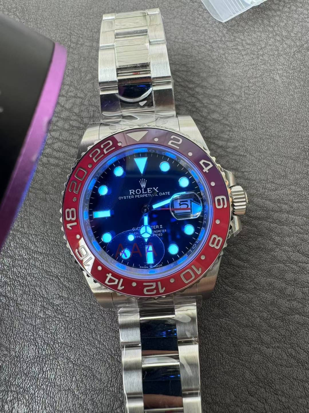 V3 UV-Reactive Bezel & Precision Machining: The latest V3 red and blue ceramic insert features an incredible UV reaction—under ultraviolet light, the entire bezel glows red, perfectly mirroring the genuine material characteristics. Furthermore, the bezel gear grooves are sized perfectly, correcting the oversized, inaccurate grooves commonly seen in other market versions.