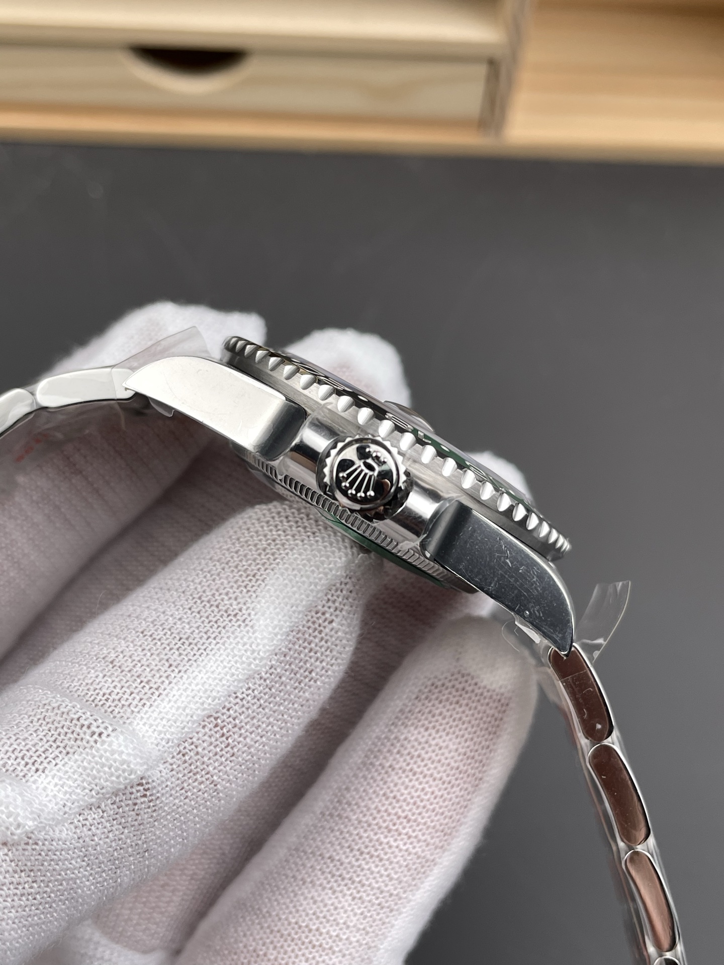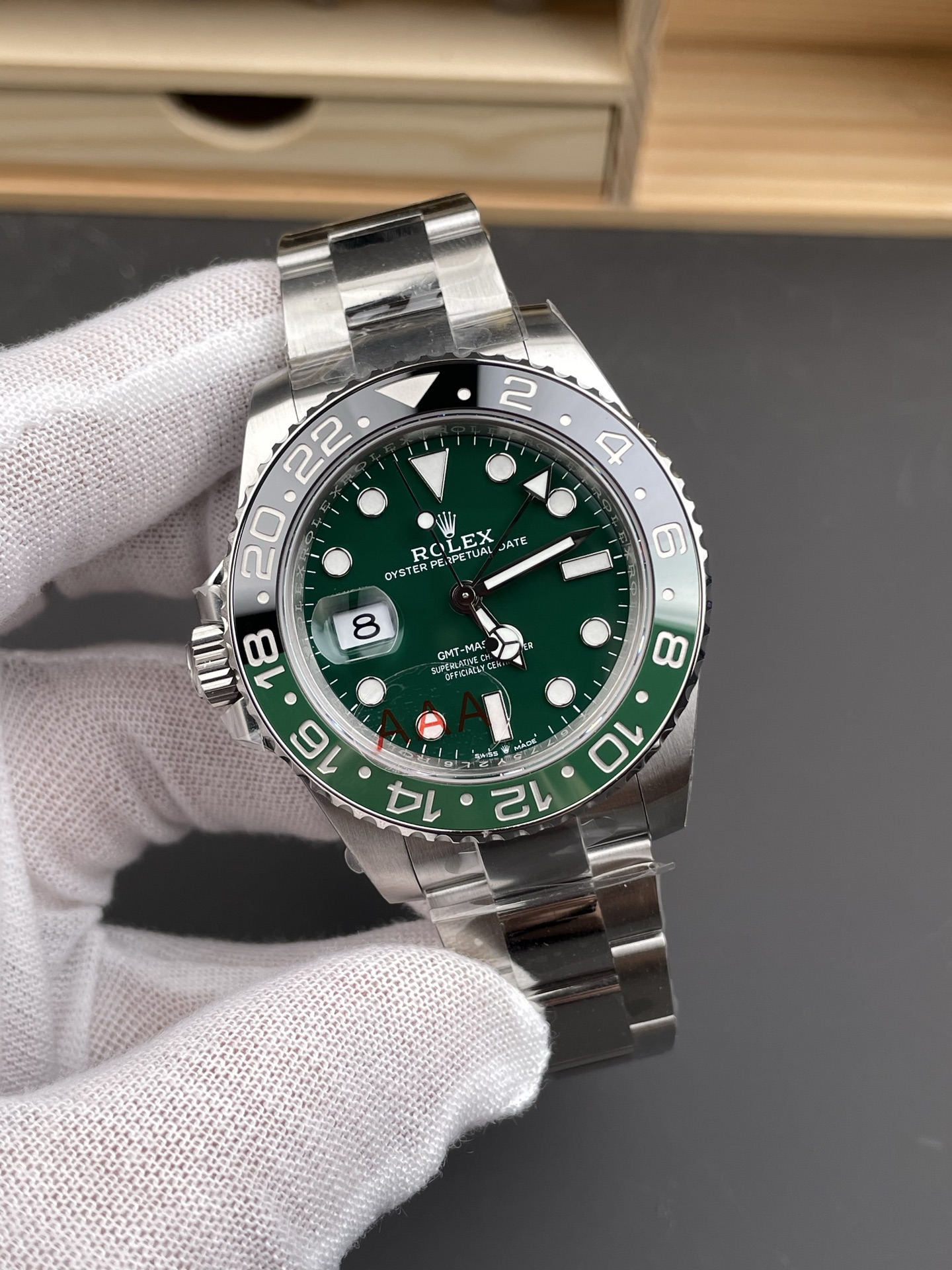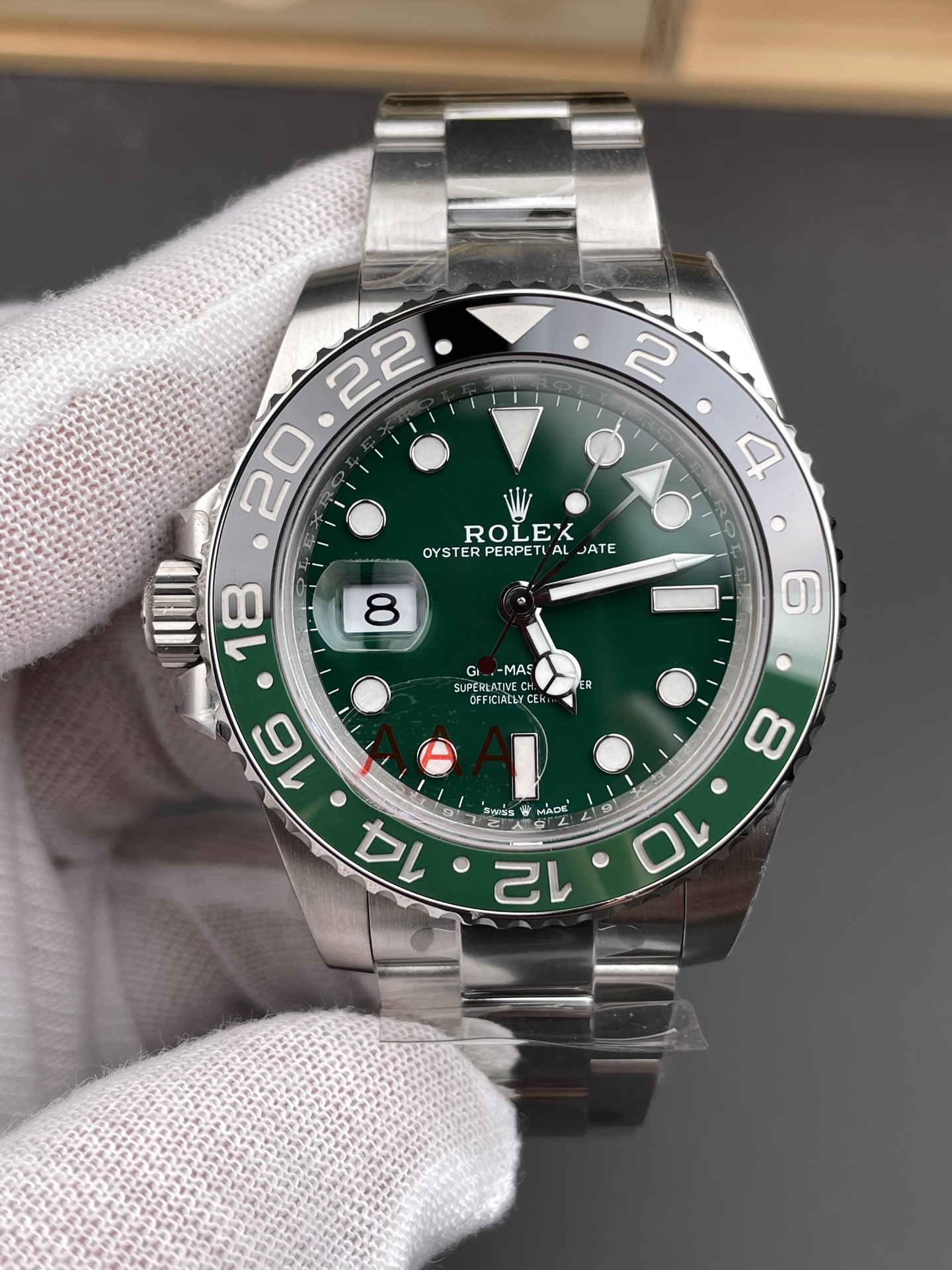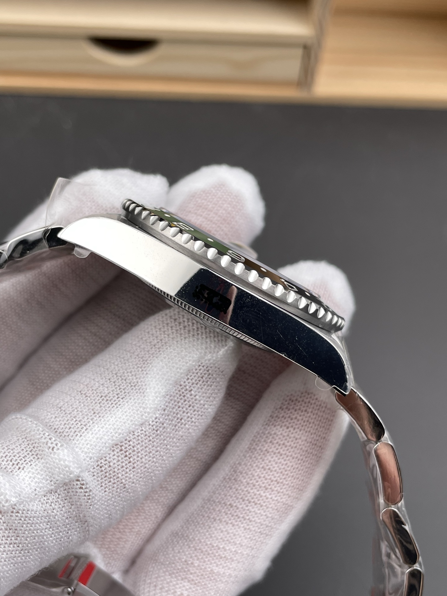 Seamless Monoblock Bezel & Precision Machining: The green and black ceramic bezel insert features a flawless color transition with no visible seams. The bezel gear grooves are precisely machined to the original depth, effortlessly passing the tactile “fingernail test.”
