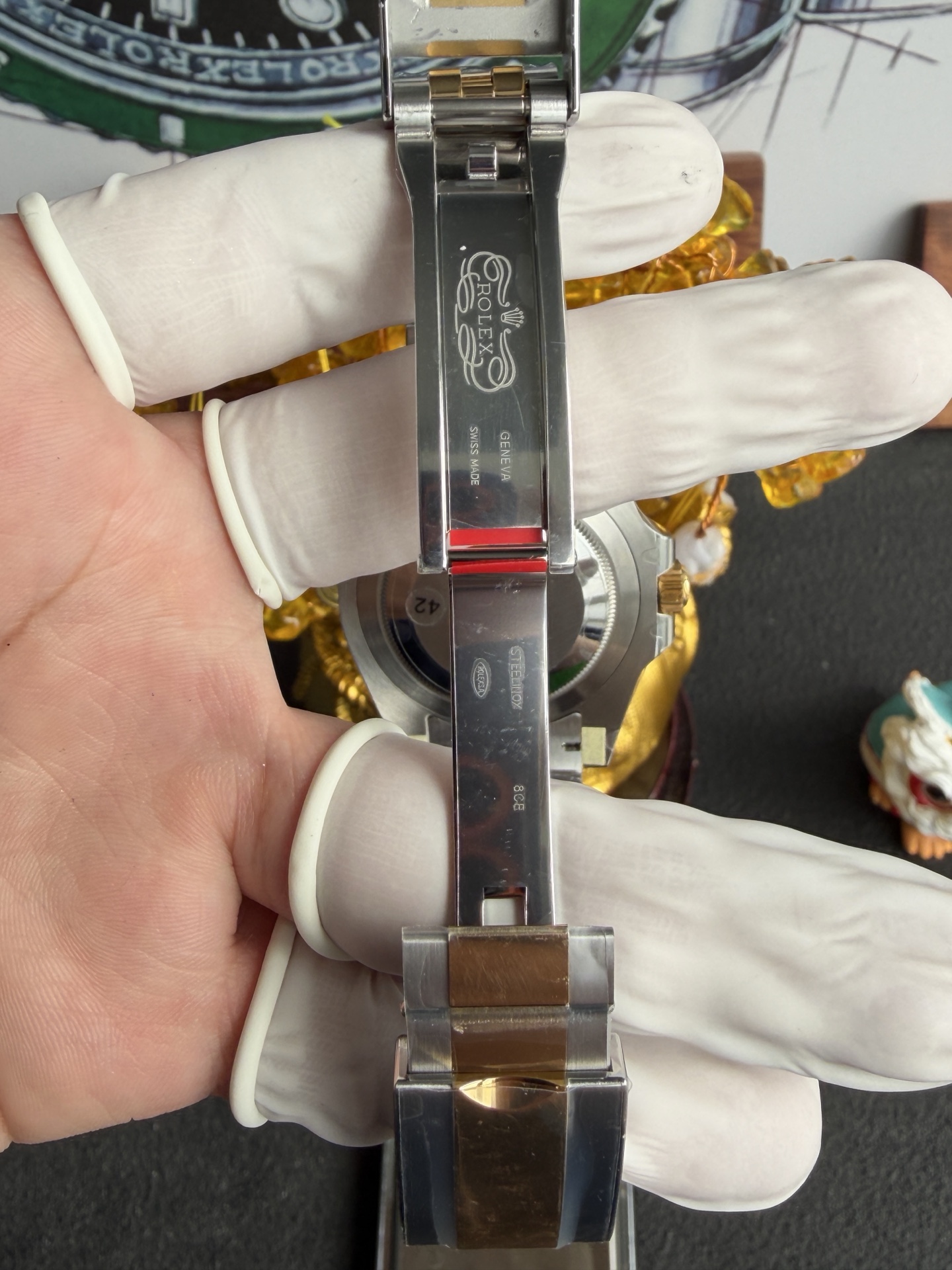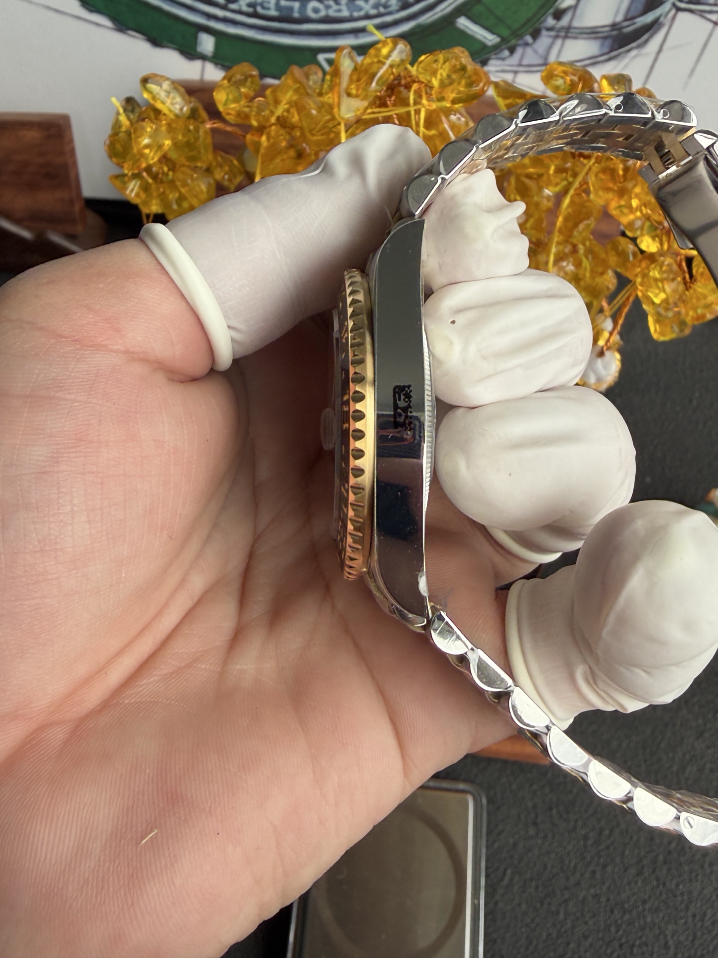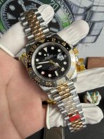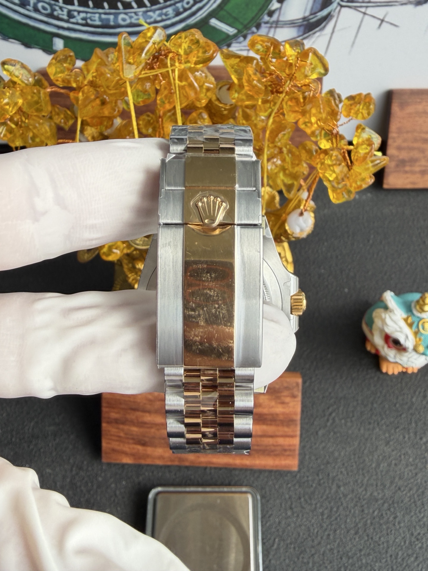 Premium Two-Tone Finish & Gold Accents: VSF has perfected the 18K yellow gold tone on the bezel edge, winding crown, and Jubilee bracelet center links, avoiding the “cheesy” or overly yellow hues found in lower-tier replicas. The dial features the correct yellow gold-toned GMT hand and “GMT-Master II” dial text, perfectly matching the genuine 126713GRNR configuration.