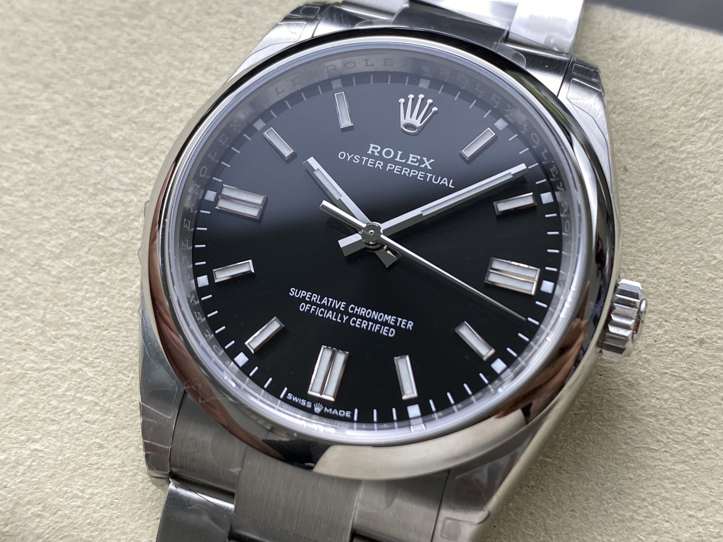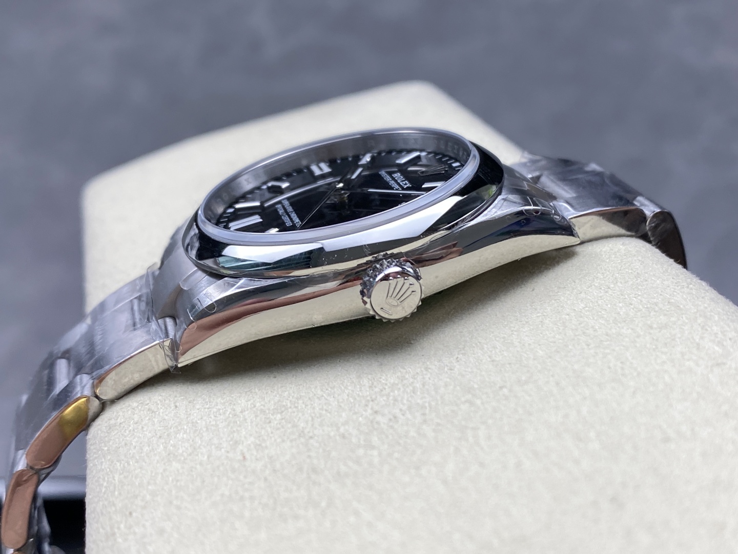 Perfect 36mm Proportions: The 36mm case is widely considered the “Goldilocks” size for the Oyster Perpetual, offering a beautifully timeless, unisex wearing experience. VSF has flawlessly replicated the refined, sweeping lugs and slim case profile, ensuring it wears incredibly comfortably and slides effortlessly under any cuff.