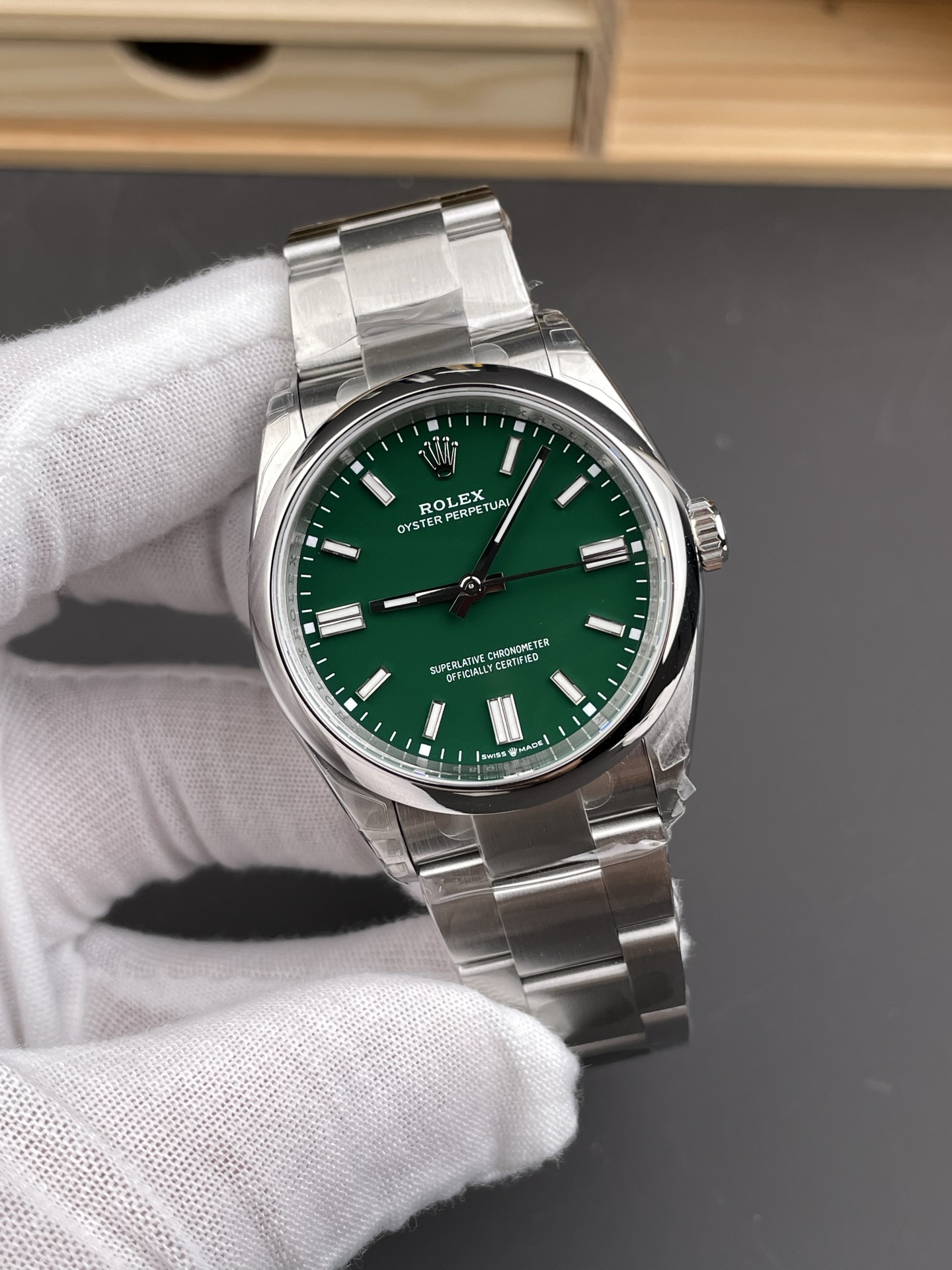 • Perfect 36mm Proportions: The 36mm case is widely considered the “Goldilocks” size for the Oyster Perpetual, offering a beautifully timeless, unisex wearing experience. VSF has flawlessly replicated the refined, sweeping lugs and slim case profile, ensuring it wears incredibly comfortably and slides effortlessly under any cuff while letting the bold dial do all the talking.