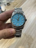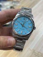 The Rolex Oyster Perpetual 41 (Reference 124300) is the ultimate expression of modern, unpretentious luxury, and this specific colorway is an absolute cultural phenomenon. Flawlessly executed by the legendary VS Factory (VSF), this 1:1 super clone takes the highly coveted Turquoise Blue “Tiffany” lacquer dial and scales it up to a highly contemporary 41mm case profile. Stripping away the date window, fluted bezels, and polished center links, it delivers a masterclass in vibrant minimalism that demands attention through sheer proportion and explosive color. Framed by a highly polished smooth bezel and mounted on a robust, fully brushed Oyster bracelet, this 41mm piece is the ultimate high-energy “Go Anywhere, Do Anything” (GADA) watch for those who prefer a more substantial wrist presence. Powered by VSF’s industry-leading VS3230 automatic movement, it delivers a true 72-hour power reserve and uncompromising accuracy.