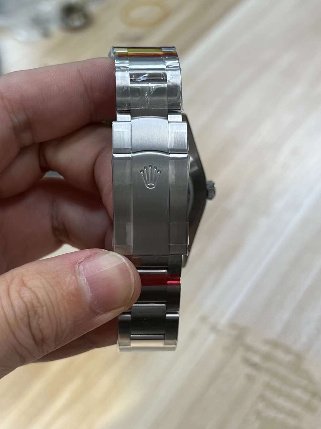 Rugged Fully Brushed Oyster Bracelet: Complementing the bright minimalist dial, the solid 904L steel Oyster bracelet is entirely satin-brushed. This tactical finish is incredibly effective at hiding daily wear-and-tear and grounds the vibrant dial with a sporty, utilitarian feel. It is equipped with the highly secure folding Oysterclasp and the convenient 5mm Easylink comfort extension system.