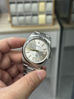 The Rolex Oyster Perpetual 41 (Reference 124300) is the ultimate expression of modern, unpretentious luxury, and this Silver Sunburst colorway is undoubtedly the most elegant model in the entire collection. Flawlessly executed by the legendary VS Factory (VSF), this 1:1 super clone scales pure, vintage-inspired sophistication up to a commanding 41mm case profile. Stripping away the date window, it relies entirely on perfect proportions and the mesmerizing light play of its radiant silver dial, beautifully contrasted by yellow gold-plated hands and hour markers. Framed by a highly polished smooth bezel and mounted on a robust, fully brushed Oyster bracelet, this 41mm piece is the ultimate “stealth wealth” daily wearer that perfectly bridges the gap between a rugged sports watch and a refined dress piece. Powered by VSF’s industry-leading VS3230 automatic movement, it delivers a true 72-hour power reserve and uncompromising accuracy.