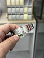 • Streamlined Smooth Bezel: The fixed, smooth domed bezel is highly polished, adding a sharp, elegant frame to the silver dial. It provides a clean, aerodynamic aesthetic that prevents snagging and allows the dynamic sunburst finish and gold accents to command all the visual focus.