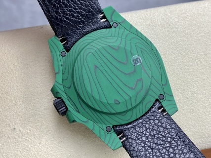 Striking “Green Devil” Carbon Construction: The case and bezel are masterfully crafted from a specialized layered green carbon composite. This premium material features a unique, wavy wood-grain texture that beautifully mimics the ultra-expensive Quartz TPT materials found in top-tier luxury sports watches. Because of the complex manufacturing process, the green layered pattern on every single watch is completely unique, making your piece a true 1-of-1.