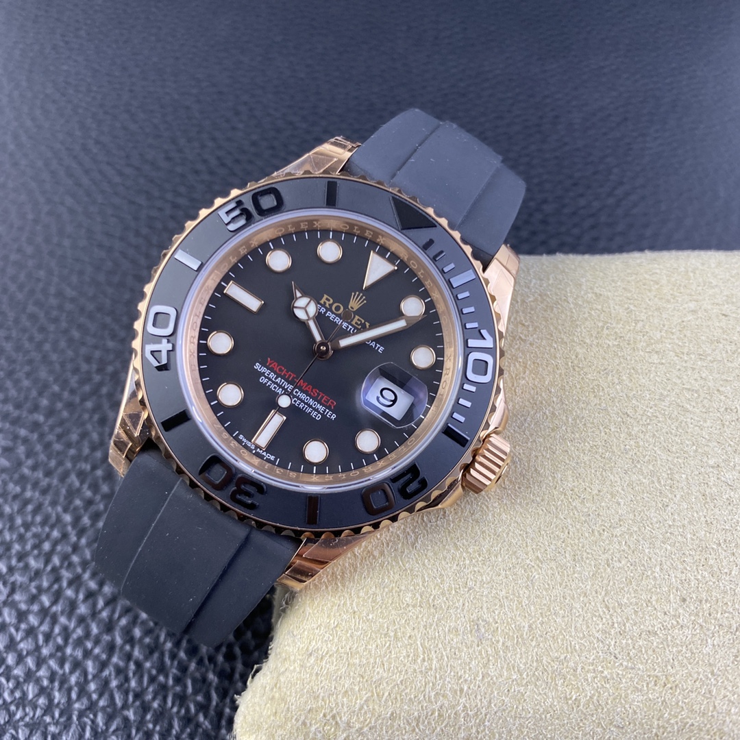 The Rolex Yacht-Master 40 (Reference 116655) is the ultimate expression of nautical luxury and aggressive, modern sports watch design. Flawlessly executed by the legendary VS Factory (VSF), this 1:1 super clone relies on a breathtaking high-contrast aesthetic. It pairs the warm, wealthy tones of a heavy 18K Rose Gold plated case with stealthy, highly durable matte black elements. The undeniable centerpiece is the sandblasted matte black ceramic bezel, which perfectly frames the matte black dial and seamlessly integrates with the highly innovative black Oysterflex strap. Powered by VSF’s industry-leading, battle-tested VS3135 automatic movement, it fully replicates the authentic mechanics and reliability of the genuine article, delivering a completely flawless wrist presence for the open seas or the weekend drive.