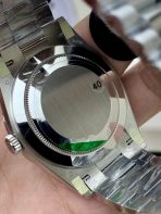 • The “Presidential” Complication: Unlike the Datejust, this flagship model features the signature curved window at 12 o’clock spelling out the full day of the week, alongside the traditional date window at 3 o’clock. The VSF custom VS3255 clone movement ensures both the day and date flip simultaneously at midnight, just like the genuine article.